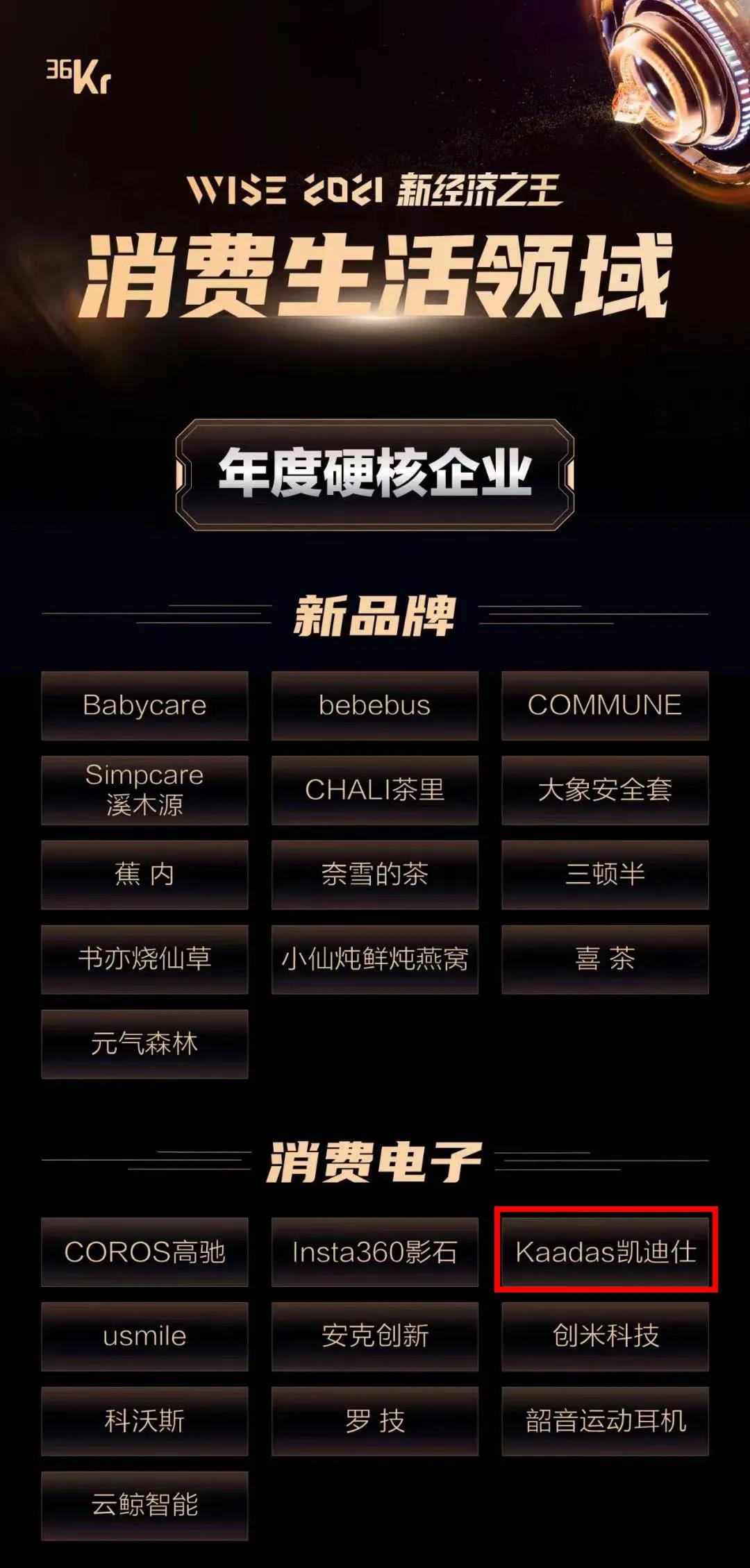 12月13日-15日,36氪 WISE2021新经济之王峰会在上海举行,大会现场重磅揭晓「WISE2021新经济之王」系列榜单。结合专业投资机构意见、36氪资深行业分析师等综合推荐及意见反馈,经多轮遴选后,Kaadas伟德app安卓版下载荣获36氪「WISE2021新经济之王」“年度硬核企业”大奖,是消费生活领域中智能锁行业唯一上榜品牌!