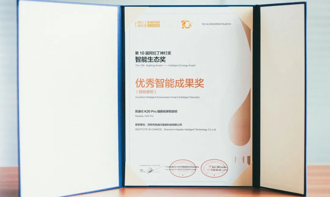 智能版块是2022年第十届阿拉丁神灯奖以广州国际建筑电气技术及智能家居展览会为基础,特设立的“智能生态奖”,共有197家单位参与申报,申报总数共310项。经过终审委员会及评审团专家的共同评选,伟德app安卓版下载K20 Pro猫眼视屏智能锁凭借创新技术和出众的产品功能脱颖而出,斩获阿拉丁神灯奖·智能生态奖·优秀智能成果奖(智能安防),成为智能锁行业唯一获奖产品和品牌。