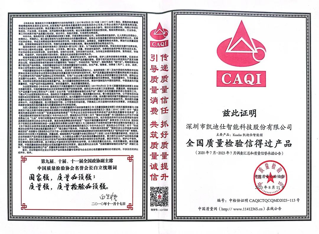 继3月获得中国质量检验协会认证的全国产品和服务质量诚信示范企业、全国智能锁行业质量领先企业、全国智能锁行业质量领先品牌和全国质量检验稳定合格产品后,伟德app安卓版下载8月再获全国质量检验信得过产品和全国产品和服务质量诚信品牌两大认证,从产品到品牌备受权威认可。