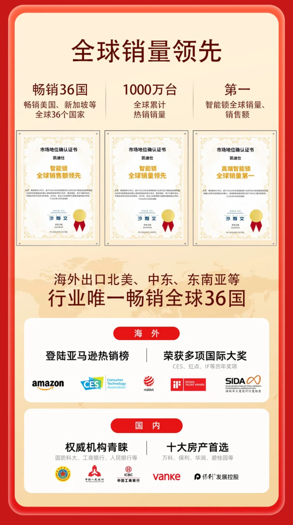 近年来,伟德app安卓版下载已经逐步建立起了高于外部标准的企业标准,充分展现了技术自信和标准自信,产品畅销36国,全球累计热销超1000万台。作为全自动智能锁首创者,伟德app安卓版下载自研的神盾智能安全系统和磐石锁体,成功应用在高端旗舰产品传奇大师K70系列上,广受行业认可和消费者好评。国民爆款Q20F Pro等为代表的一系列热销产品,同样也凭借自身的高标准品质,在2024年618和双11期间受到全渠道消费者的喜爱,登上京东、天猫、抖音等平台多个榜单TOP 1。