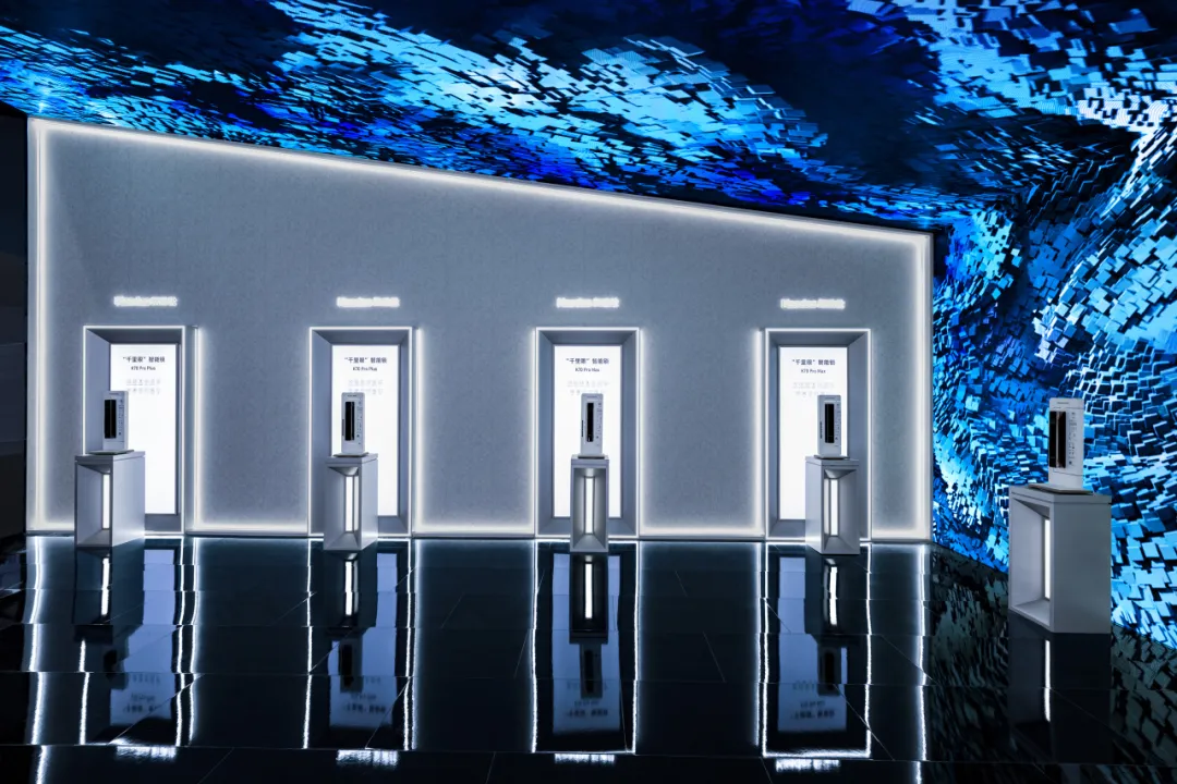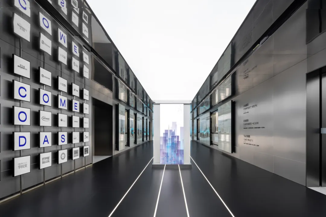 展厅塑造了“七分科技三分温度”的空间调性,运用长达21m的特色品牌轴、5.75m*2.72m巨型3D全息屏以及14组通顶液晶滑轨屏矩阵,打造出沉浸式的未来「仕」界,徐徐展开「产品硬实力」和「企业软实力」的品牌故事,为来访者带来了更多的视觉惊喜和情感共鸣。