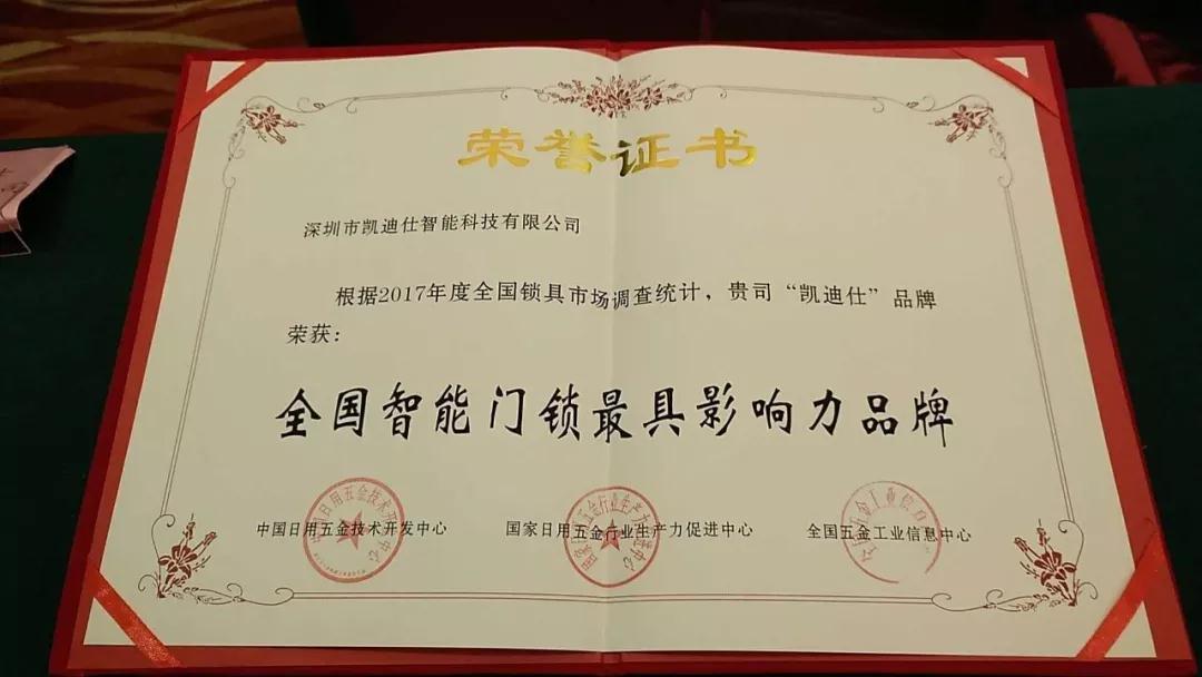 喜讯,伟德app安卓版下载获“全国智能门锁最具影响力品牌”荣誉,由中国日用五金技术开发中心、国家日用五金行业生产力促进中心、全国五金工业信息中心联合颁布。