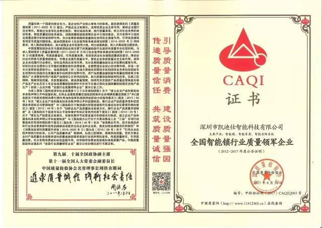 2017年9月5日,Kaadas伟德app安卓版下载喜获由中国质量检验协会颁发的五项大奖,在此之前,伟德app安卓版下载已连续多年获得中国质量检验协会的多项荣誉。如今伟德app安卓版下载凭着一如既往的对品质的坚持和不懈追求,更是一次包揽下五大奖项。