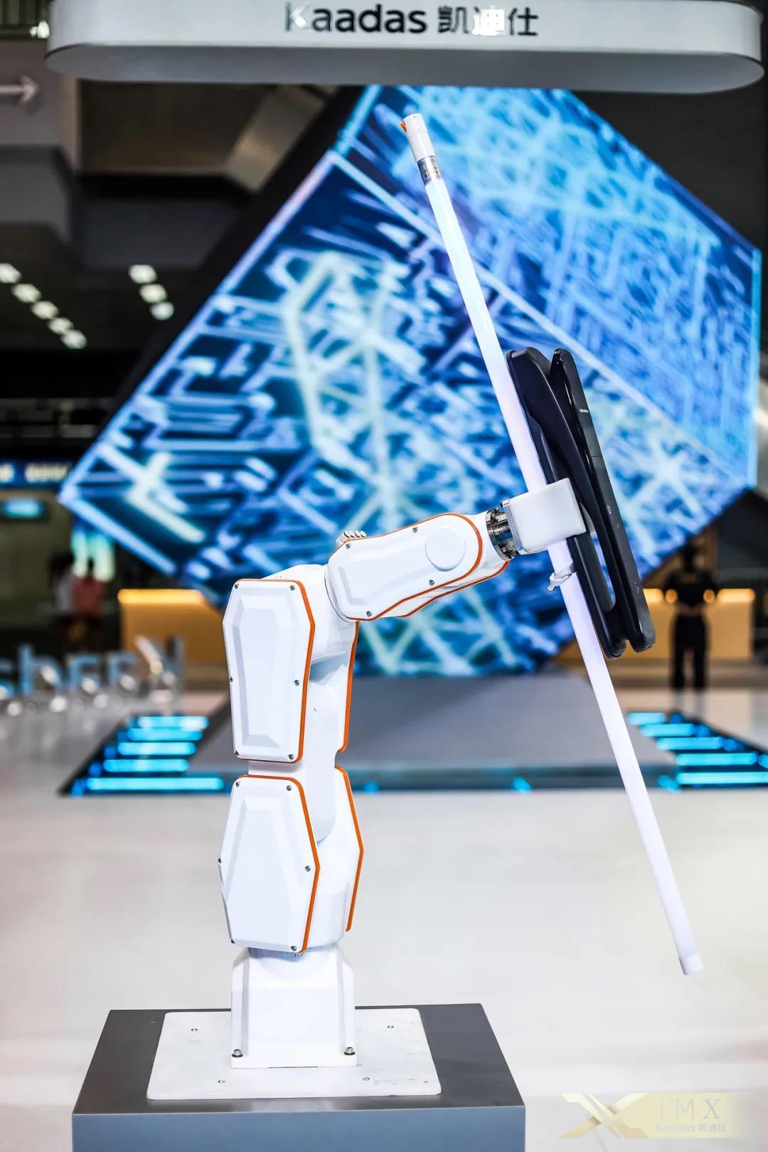在展馆正面入口处,左右两侧陈列了共8台机械臂艺术装置,是伟德app安卓版下载为本次建博会来宾精心准备的创意表演,花费数月时间进行程序开发和3D编排,运用光影艺术,将伟德app安卓版下载新品、机械臂和灯管结合,通过机械臂的运动轨迹带动伟德app安卓版下载新品和LED灯管旋转舞蹈,为来宾赋予入场的独特仪式感和前卫、震撼的演出视效。