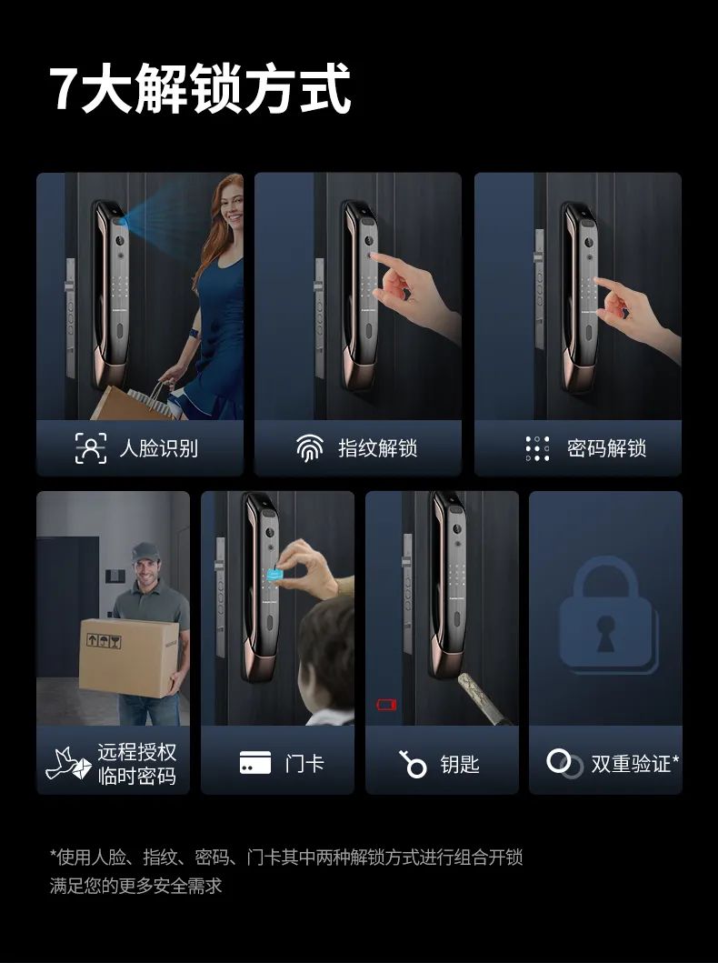 3D人脸、指纹、密码、卡片等解锁方式,都需要在智能锁面板上进行操作录入。