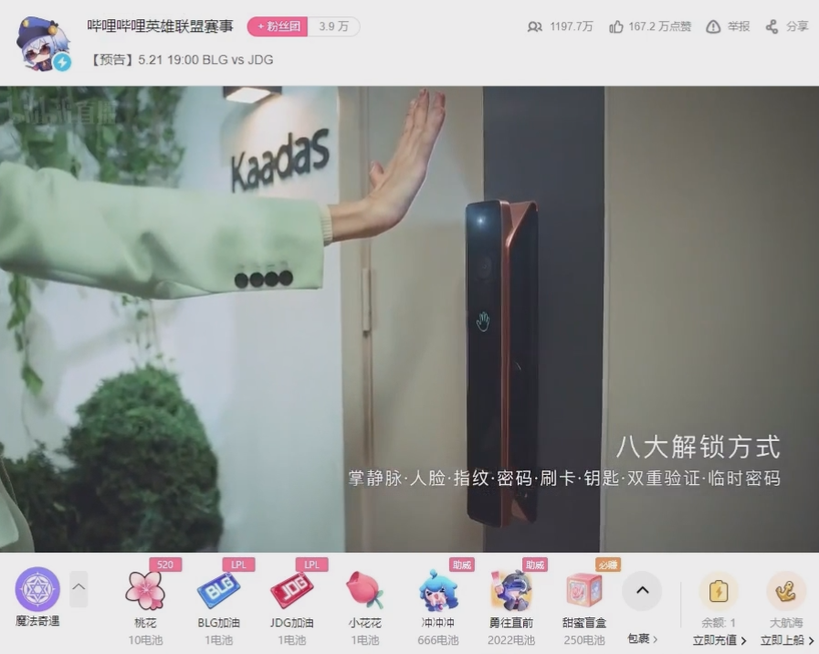 JDG夺冠!B站单场人气值2亿+,Kaadas伟德app安卓版下载携手哔哩哔哩直播,全程助力中国战队力破万障,包揽冠亚军!